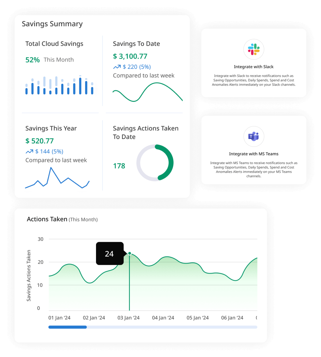 CloudInSpot offers a unified platform for managing and monitoring multiple cloud services, providing a centralized view of the entire infrastructure. Simplifies the integration process, enhances visibility, and streamlines operations across various cloud services.